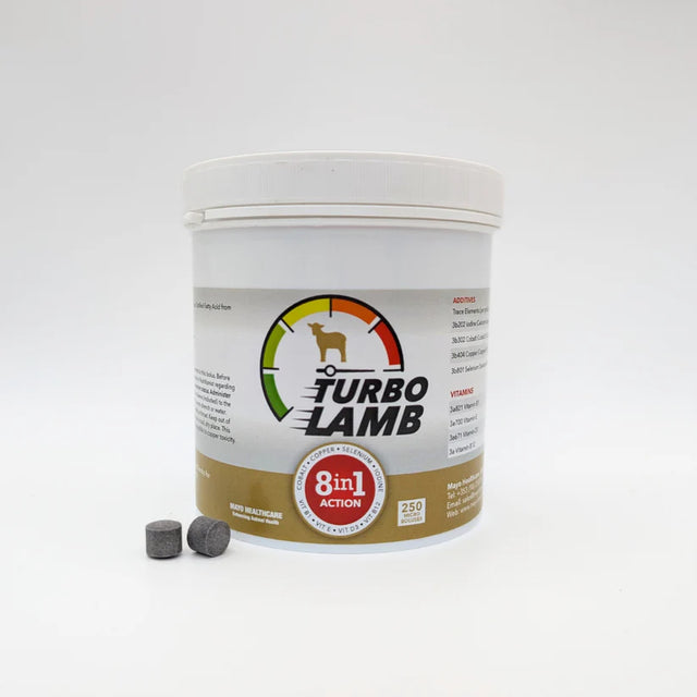 Turbo Lamb 8in1 is a chelated Cobalt micro pellet containing Copper, Iodine, Selenium. Turbo Lamb also contains Vitamin E, Vitamin D3, Vitamin A, Vitamin B12, and B1 for the thrive and growth of lambs for up to 8 weeks.